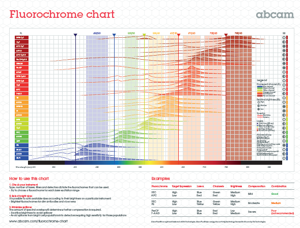 Choosing a fluorescent dye suitable for subsequent experiments may be difficult without the aid of a suitable tool. If the designed experiment is a multicolor experiment requiring two or more fluorescent dyes, the choice of fluorescent dye will become more difficult. In multicolor experiments, attention must be paid to spectral overlap between fluorescent dyes and other factors to minimize possible problems, such as fluorescence spills.