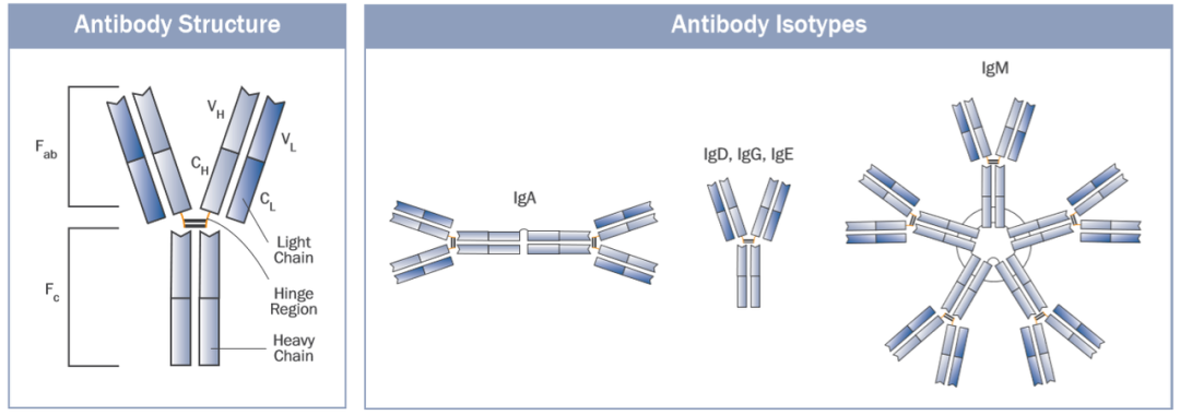 抗體結(jié)構(gòu)與抗體類(lèi)型示意圖