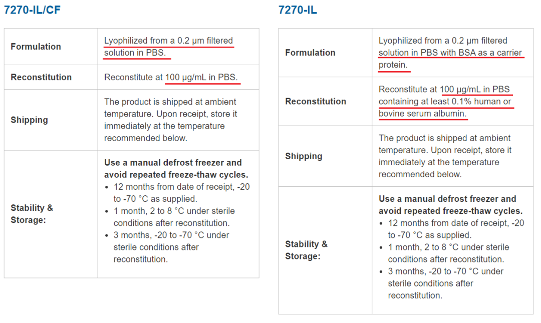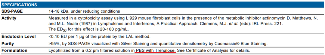 注:并不是所有不標(biāo)注 CF 的蛋白產(chǎn)品都含有 BSA,產(chǎn)品的具體成分需要參考產(chǎn)品說明書或 COA。