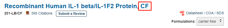 CF,是 Carrier Free 的意思。一般來說,為了對(duì)重組蛋白的結(jié)構(gòu)及活性進(jìn)行保護(hù),我們會(huì)在蛋白產(chǎn)品中添加牛血清白蛋白(BSA)作為載體蛋白。但考慮到 BSA 會(huì)對(duì)某些實(shí)驗(yàn)造成影響,我們又研發(fā)出不含載體蛋白(BSA)的產(chǎn)品,即 Carrier Free 蛋白。