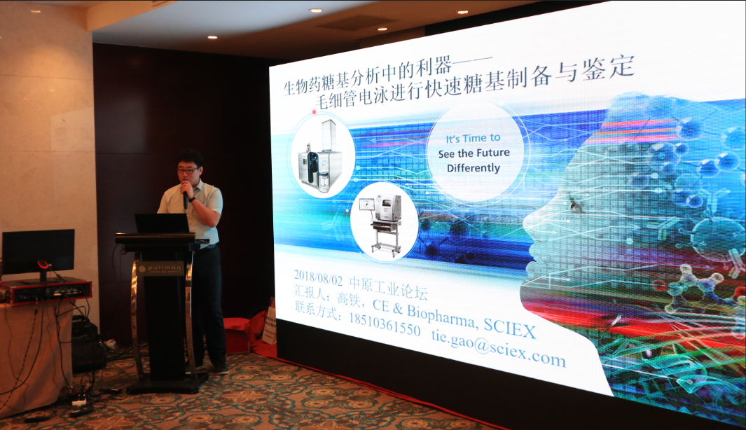 Sciex公司生物制藥部門技術(shù)專家高鐵對“生物藥糖基分析中的利器——毛細管電泳進行快速糖基制備與鑒定”進行了主題演講