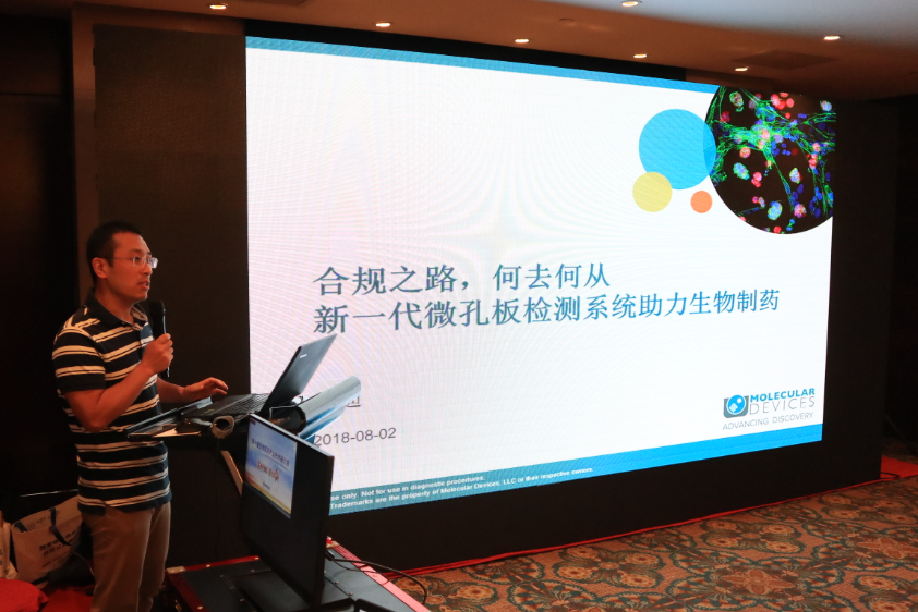 MD公司酶標儀產(chǎn)品線經(jīng)理尹迪對“合規(guī)之路,何去何從——新一代微孔板檢測系統(tǒng)助力生物制藥”進行了主題演講